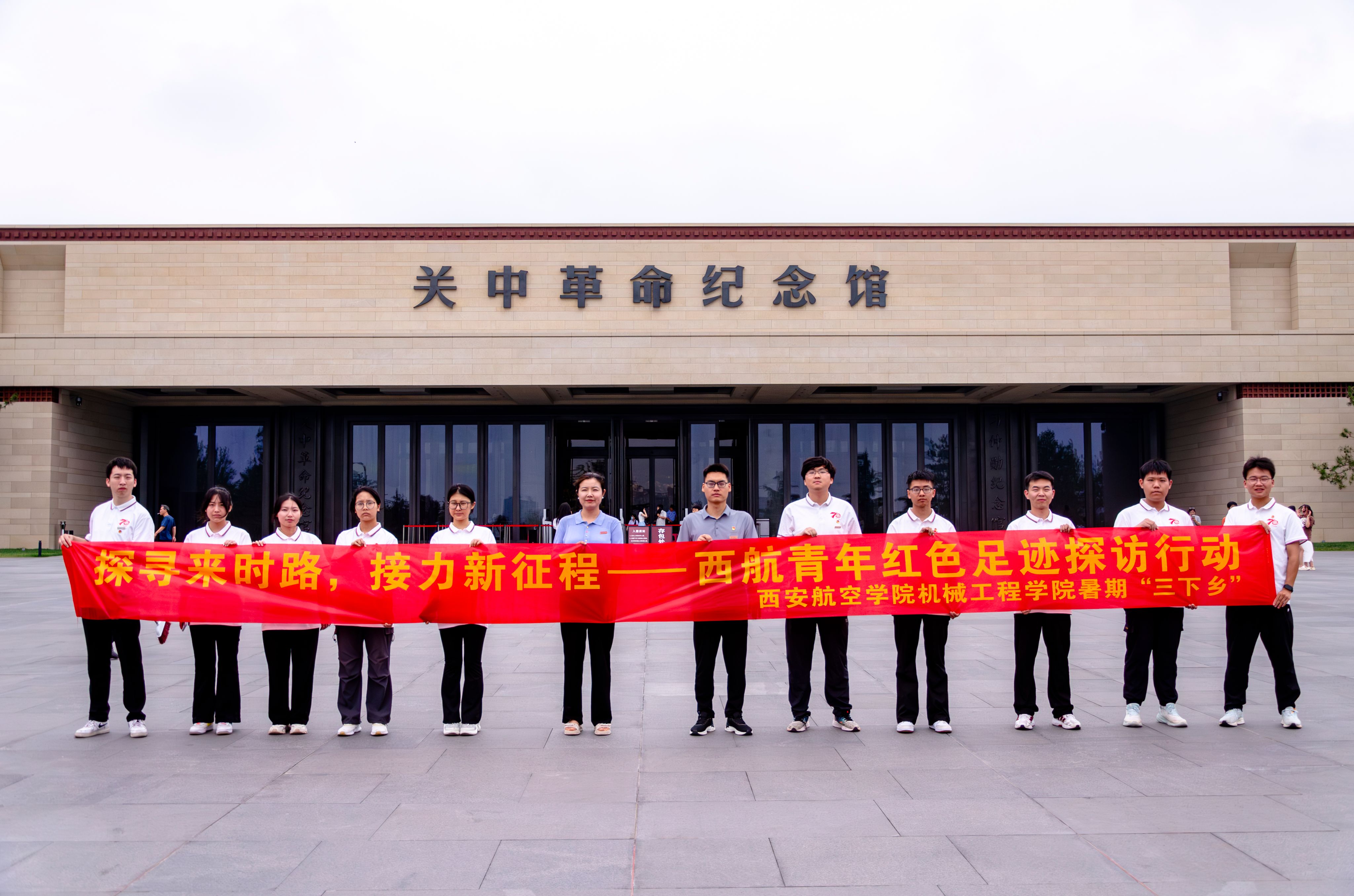 与老兵相对而坐时,他掌心的沟壑里藏着枪林弹雨的记忆,眼角的皱纹里盛着对家国的深情。“那时就想着,一定要让后人过上好日子”,朴实的话语如重锤敲在心头,让队员们读懂了 “初心” 二字最厚重的分量。杨虎城纪念馆里的家国大义,王鼎纪念馆中的忠烈风骨,航空科技馆里 “航空报国” 的初心传承,更让大家在历史与现实的交织中,明晰了青年一代的精神坐标。