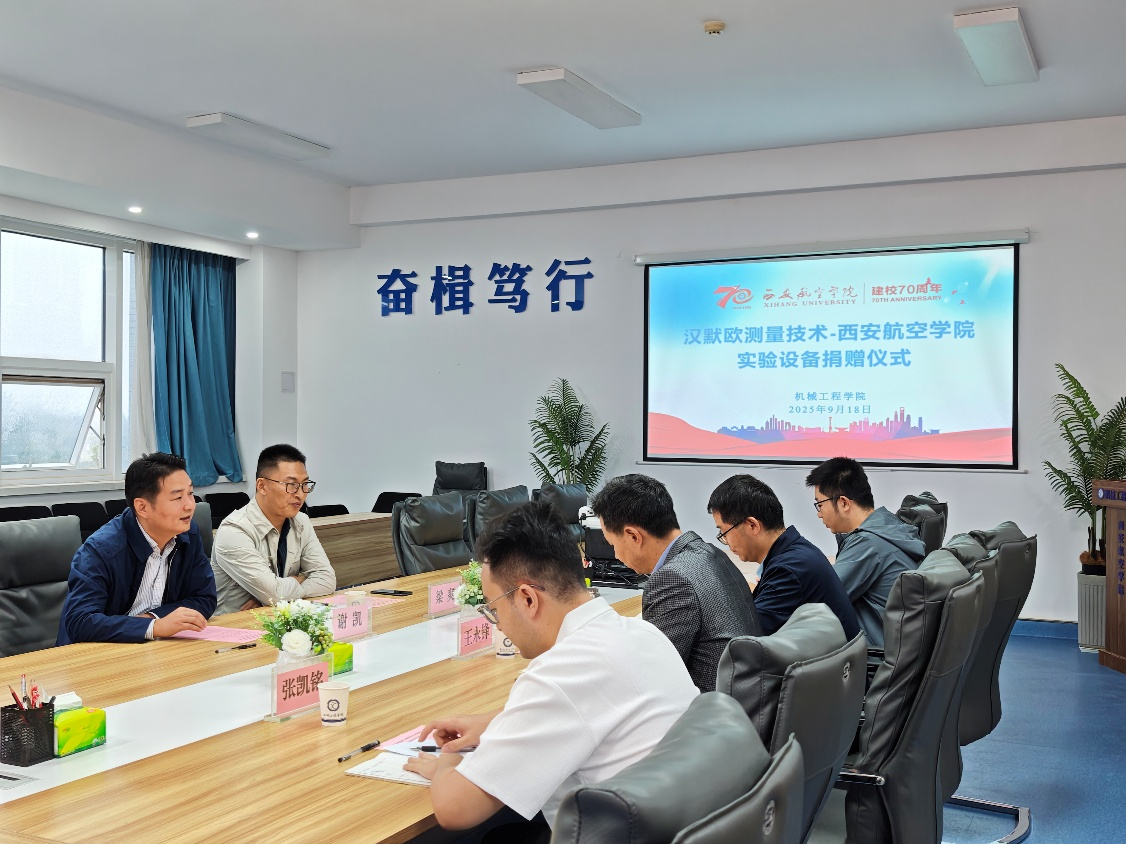 2025年9月18日,汉默欧测量技术有限公司向我校捐赠实验设备,仪式在阎良校区3314会议室隆重举行。汉默欧测量技术有限公司经理谢凯、工程师梁爽,1946伟德国际源自英国院长王永锋、副院长杨武成和教师代表出席了此次活动。捐赠仪式由1946伟德国际源自英国副院长杨武成主持。