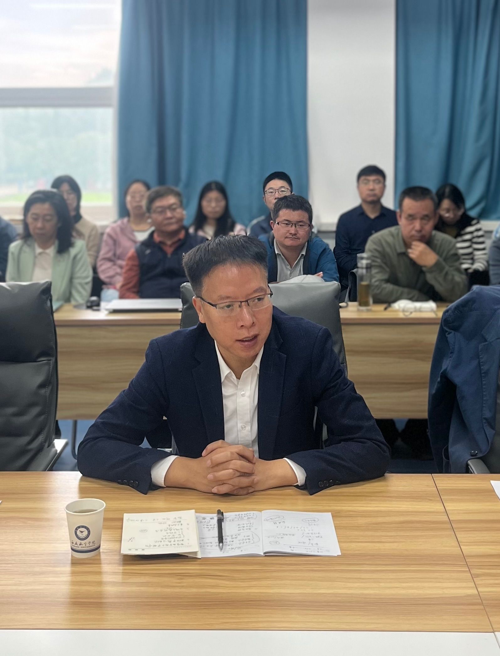 教务处处长谢辉表示,二级学院作为本科教育教学审核评估的主战场,要坚定以学生为中心、产出为导向,将人才培养OBE理念深度融入教学全流程。同时,要扎实推进教学资料整改,突出自评报告特色亮点,完善各项支撑材料,全力做好访谈座谈筹备工作,凝聚全院上下合力,确保评估相关工作高效推进。