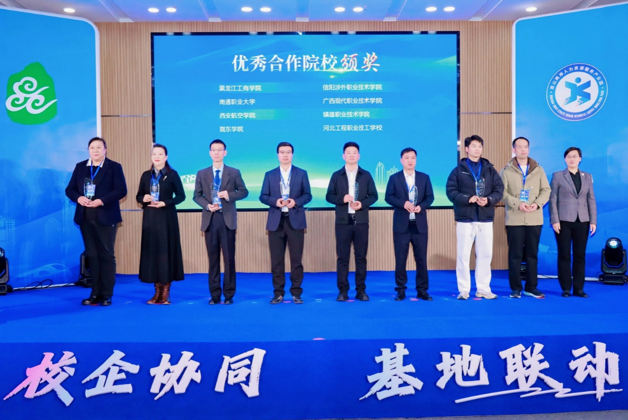 活动第二阶段,昆山市人力资源和社会保障局领导致欢迎词、回顾了校企合作历程、总结了合作成果,并为伟德国际1946bv等15所高校颁发了2024年度优秀合作院校奖杯。立讯集团、昆山丘钛微电子等企业代表上台进行了企业宣传并对合作院校表示了感谢。昆山市重点企业与院校共建产业学院举行了签约仪式。