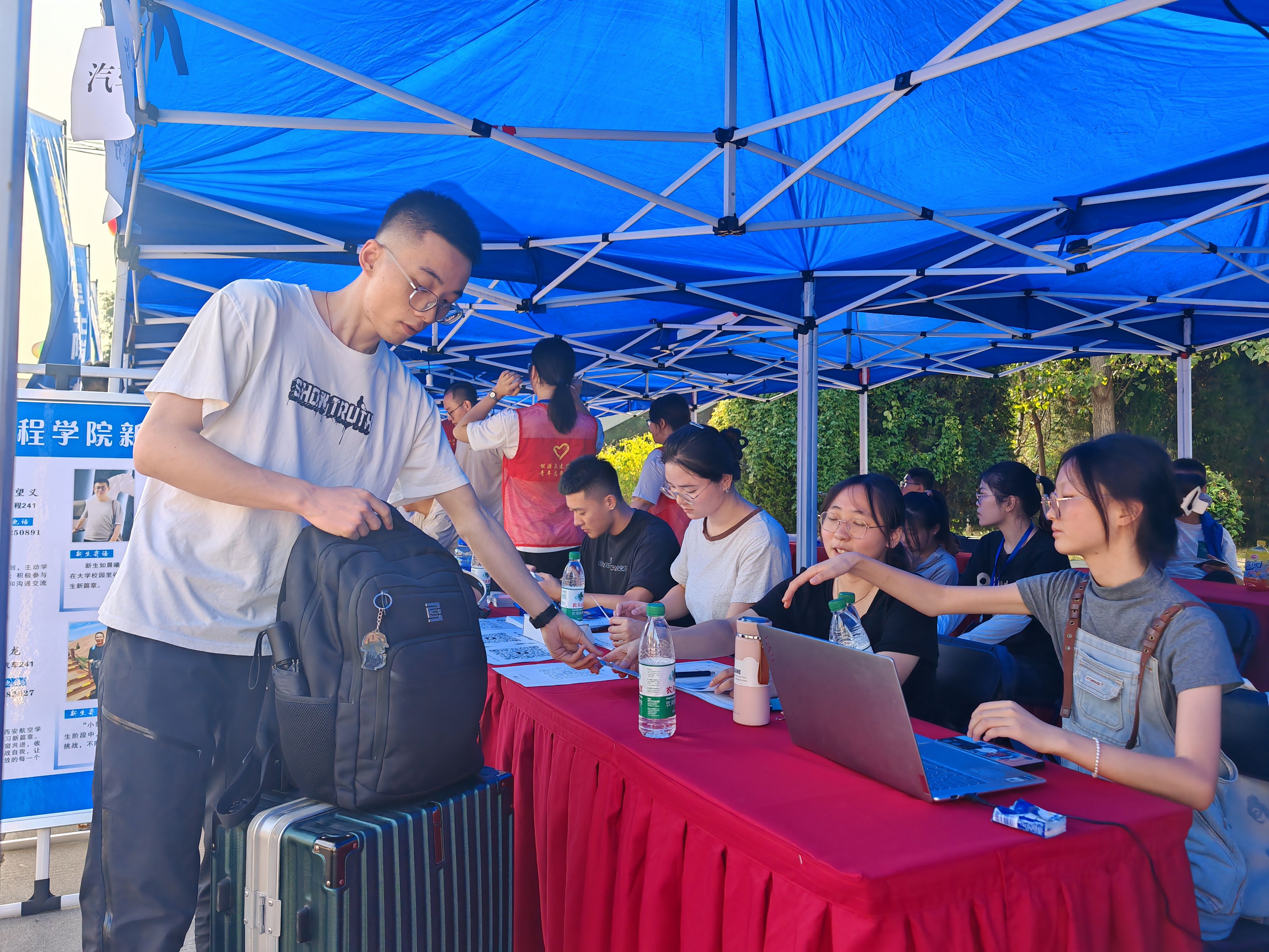 早上七点,学院迎新志愿者们不畏炎热,分工明确,热情细致规范有序的带领新生到达报到处,有条不紊地办理报到等手续。纵使汗水浸湿衣衫,迎新志愿者们依然热心的为每一位同学提供“一站式”服务,将车辆工程学院的友好与热情带去新生心中。迎新期间,车辆工程学院党委书记周小勇、车辆学院院长赵炜华莅临现场,勉励新同学们能够在未来的学习生活中不断追求卓越。学院副书记刘雨辰与新生辅导员高宏鑫在现场有条不紊地指导和推进迎新工作,鼓励新生们快速适应大学生活。