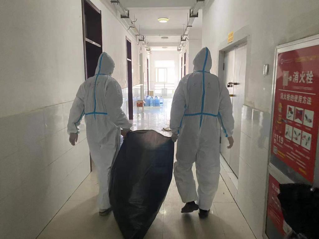 学生党员和积极分子主动申请参与志愿者服务工作,累计达123人。每天几千份盒饭、几百桶桶装水和成箱的生活物资仅靠志愿者们一层层爬楼送达。他们肩扛手抬,上下奔波,几个来回下来累的不能走动,大部分志愿者都是连续奋战,毫无怨言。除了生活物资的运送,每日的厕所消杀和垃圾运送任务艰巨,志愿者们克服困难,承担着被感染的风险,不怕脏和苦,默默地工作着。穿梭在楼间的“大白”给了同学们希望和温暖,鼓励着彼此不再害怕和担忧。