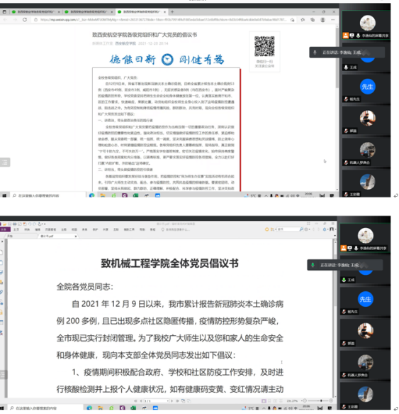 为有效控制和降低疫情传播风险,群防群治,共克时艰,1946伟德国际源自英国各党支部为动员支部全体党员在关键时刻要发挥示范引领作用,把学史力行真正做到实处,落实在防疫的各个方面,于12月25日分别举行线上“抗击疫情,奉献有我”主题党日活动。