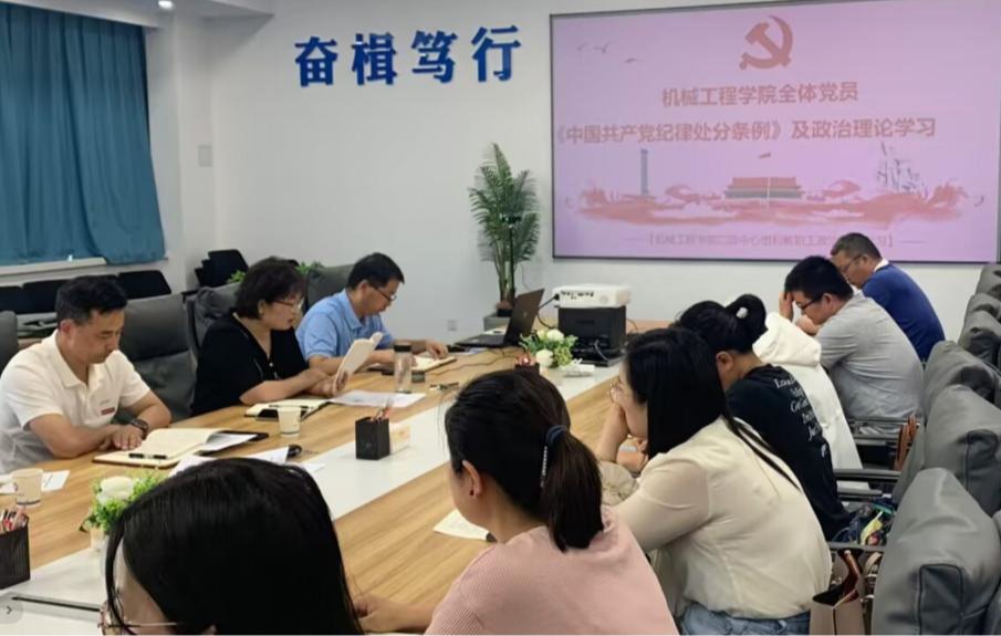 党总支书记孙茉莉领学了《中国共产党纪律处分条例》第一编,杨武成副院长、刘欣副书记分别领学第二编、第三编部分章节,全体党员参与各章节的领学。