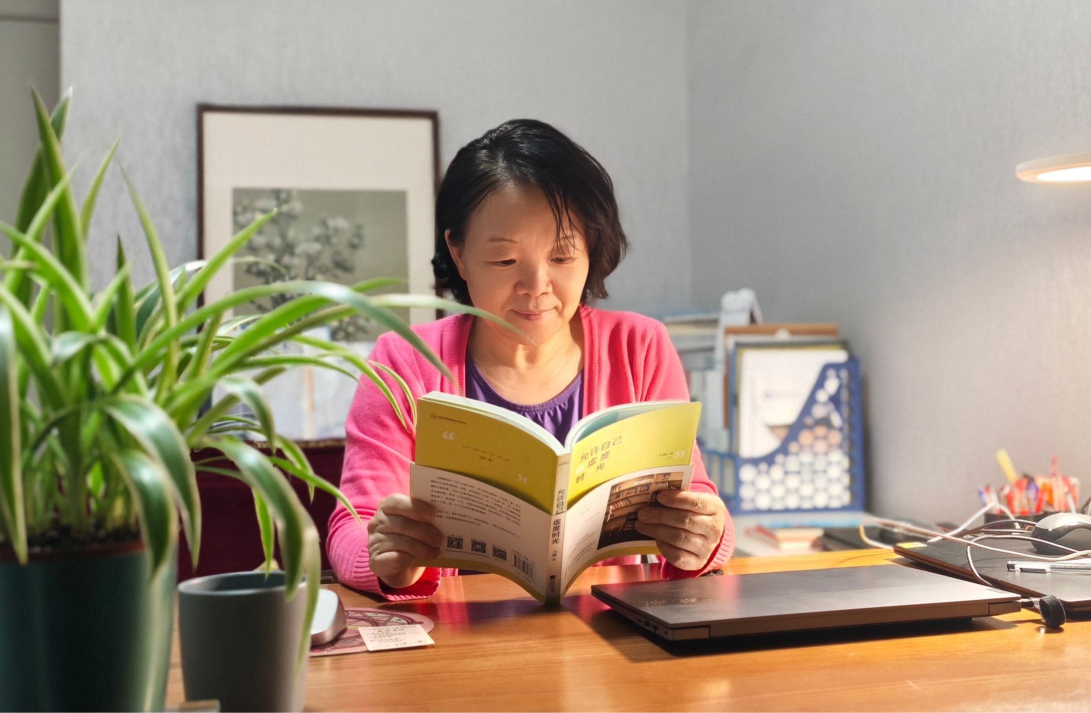 李晓玲老师分享《允许自己虚度时光》:“虚度不是荒废,而是对紧张工作和生活的和解与自愈。这本书像一双温暖的手轻轻松开我们心里那根时刻紧绷的弦,让我们学会与自己、与生活温柔相处。”