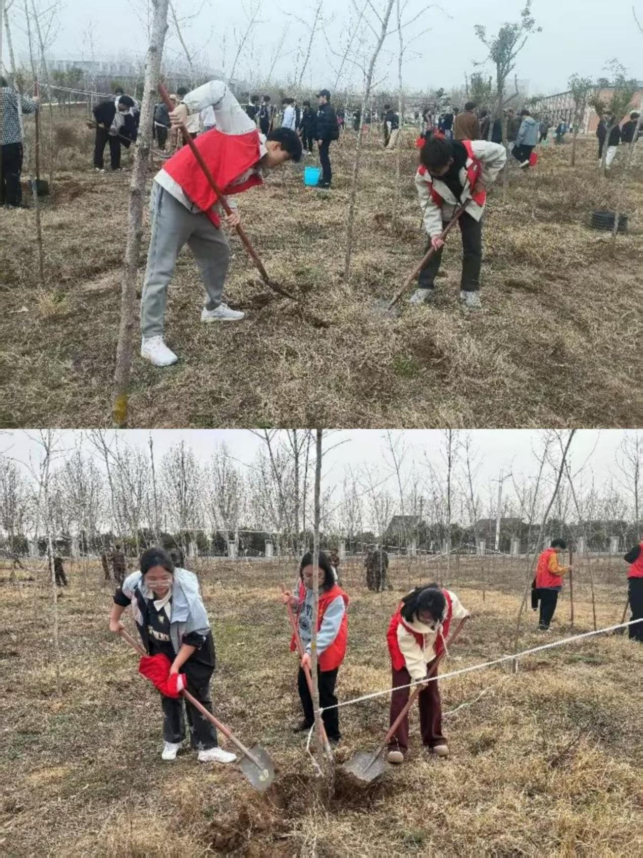 活动当日,暖阳倾洒在校园,同学们满怀期待,早早来到集合场地。在工作人员的组织下,大家自觉排起整齐的队伍,有序领取植树工具。现场秩序井然,每个人眼中都闪烁着兴奋与期待,迫不及待地想要开启这场绿色之旅。