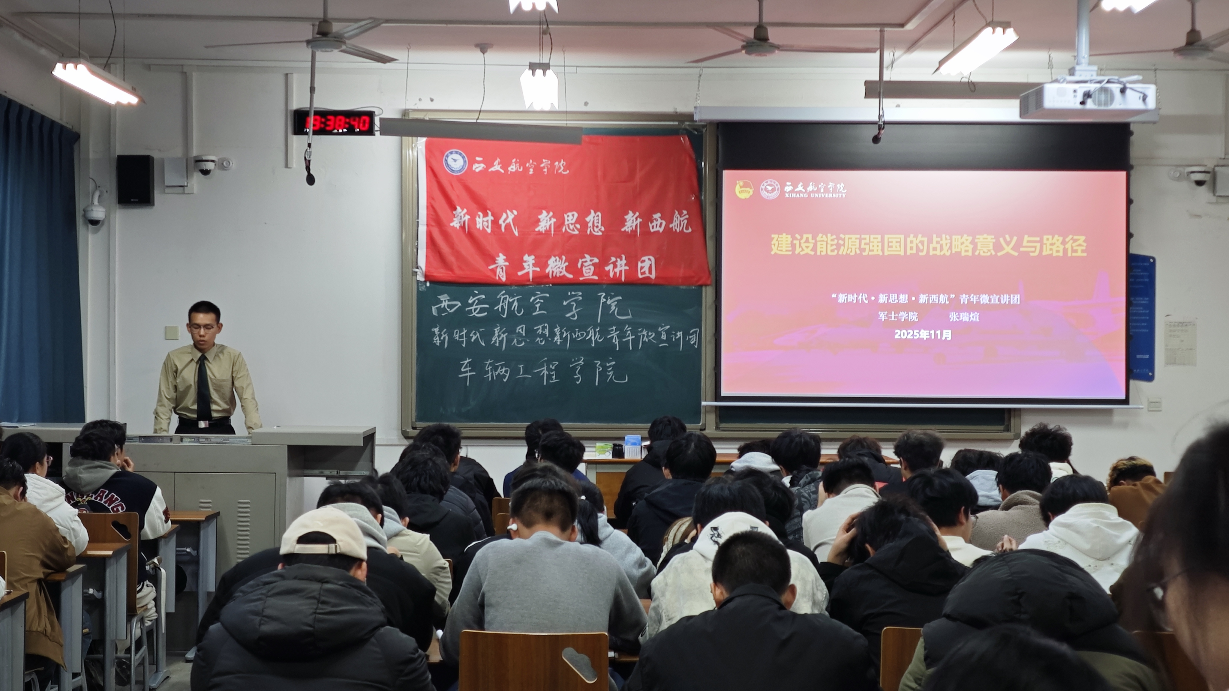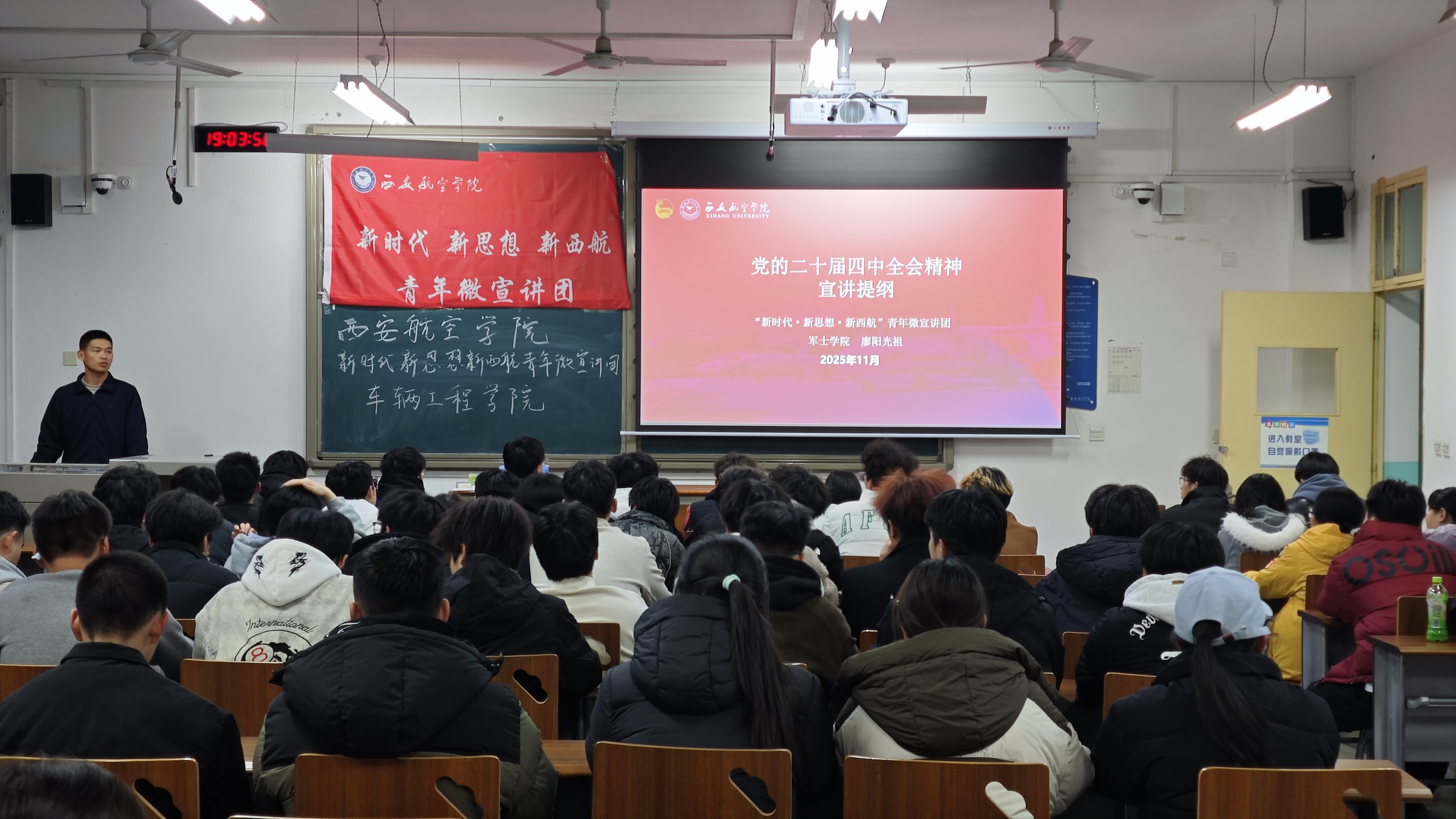 11月27日19:00,车辆工程学院邀请“新时代新思想新西航”青年微宣讲团成员开展主题团课。本次团课以“深化理论武装、联动专业发展、锚定青年责任”为主线,旨在推动团员青年将理论学习与专业成长紧密结合。
