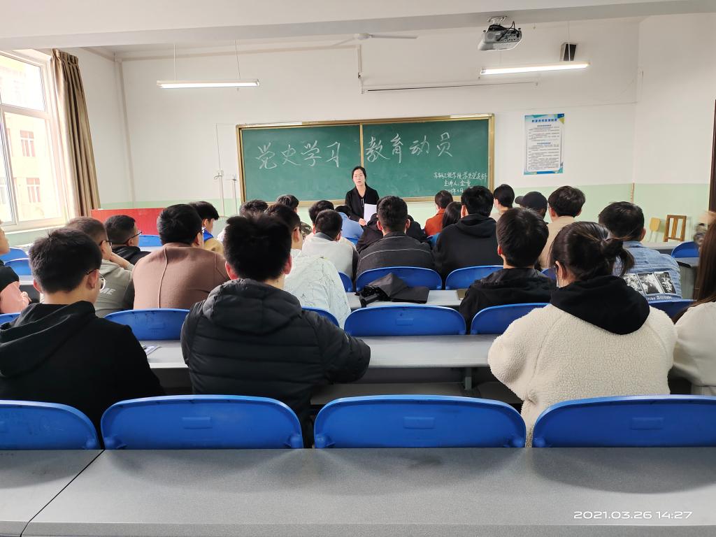 为了深入贯彻落实《中共中央关于在全党开展党史学习教育的通知》及省、市、校党史教育动员大会精神,3月26日下午车辆工程学院学生党支部在北楼333,开展了向建党一百周年献礼之党史学习教育动员大会暨书记讲党课活动,由学生第一党支部书记金雪主持,全体学生党员参加。