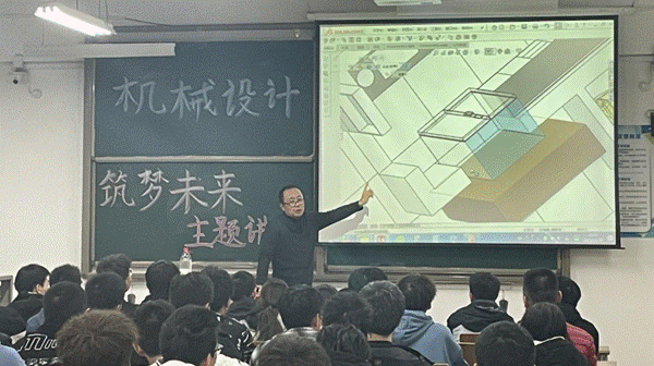 接着,张老师展示了连续两届获得省级一等奖的视频和过程展示,同时着重介绍了两届参赛主要学生陈毅华和祝超辉的近况,让同学们理解,作为机械专业的学生掌握三维设计软件应用的重要性,告诫同学,深度熟练掌握三维设计软件,不但是战士手中的钢枪,而且是拥有了一个无形的专家团队的支撑。通过两届获奖学长的与过程,同学们认识到获得成绩必须付出辛苦;这一项目实践过程即串联了所学的知识又将实际应用能力、为毕业后找工作奠定了扎实的基础。