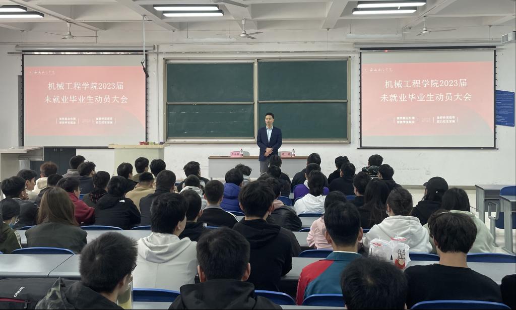 为全力促进2023届毕业生高质量充分就业,指导和帮助未就业毕业生端正就业态度,转变就业观念,合理规划职业目标,积极就业,广泛就业,优质就业,4月6日下午2点半,我院在阶梯二教室召开2023届未就业毕业生就业动员大会,学院2023届未就业毕业生参加大会,学院院长王永锋出席大会,会议由2023届毕业生辅导员苟颖主持。