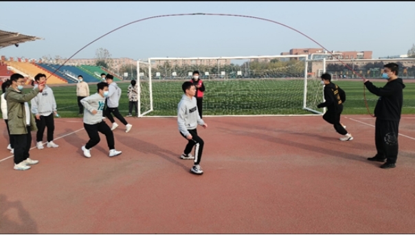 首先进行的是“趣味跳大绳项目”,“嘘~”一声哨声响起,同学们一个接着一个地跳着,流利的动作,巧妙的躲闪,无不展示着我院学子无限的活力。项目里,同学们团结协作,相互帮助,最终都取得了不错的成绩。